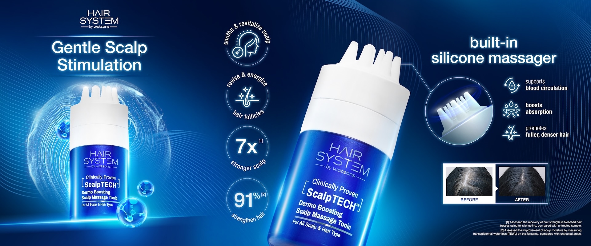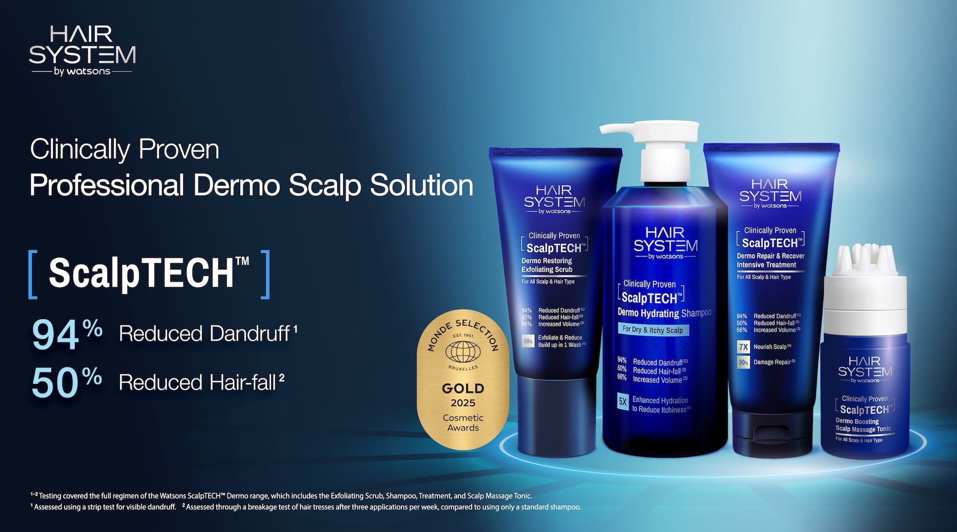 Combining advanced scientific research with professional haircare expertise, the brand offers a comprehensive range of hair and scalp care solutions. From daily cleansing and intensive treatments to styling care and scalp management, HAIR SYSTEM by Watsons is designed to fully satisfy consumers’ dual expectations of a healthy scalp and beautifully radiant hair.